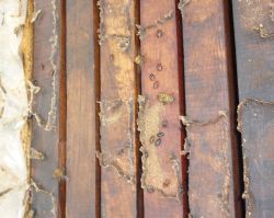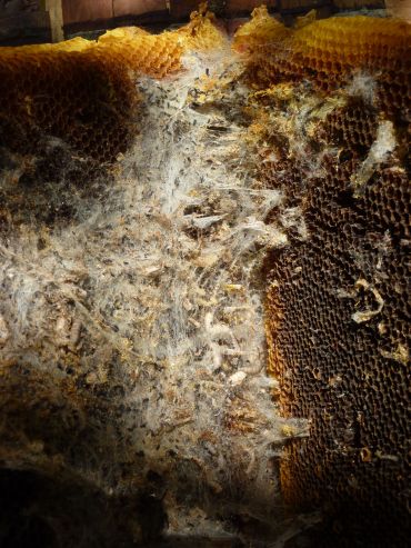 Die Wachsmotte ist auch in unseren Breiten bekannt. Ihre Larven sind hinter dem Eiweißanteil der alten Puppenkokons her und zerstören dabei den ganzen Wabenbau.