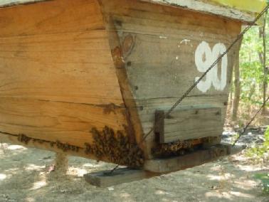 Geinkert wird in der Top Bar Hive (TBH), einer einfachen Beute. Die Biene ist die apis mellifera adansonii, ein wehrhafte Tierchen, wie ich sehr bald feststellen sollte!